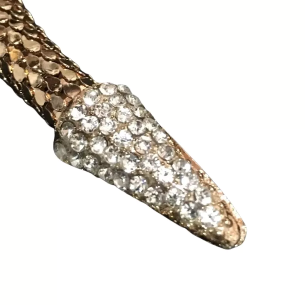 Possui acabamentos de strass na cabeça e rabo a cobra.