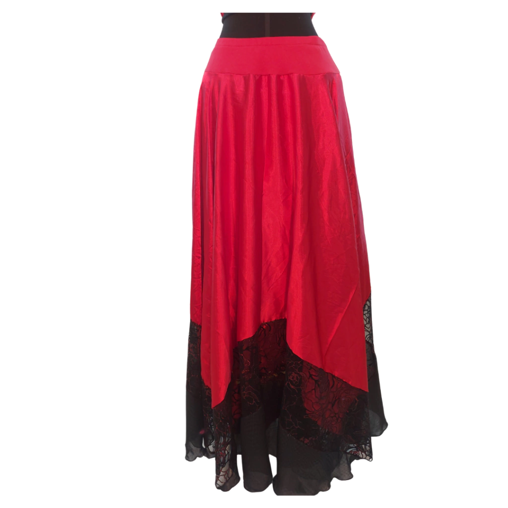 Saia Cigana coleção CASUAL GYPSY, confeccionado em crepe e renda com forro, cós em elástico. Peça com costura de alta qualidade.